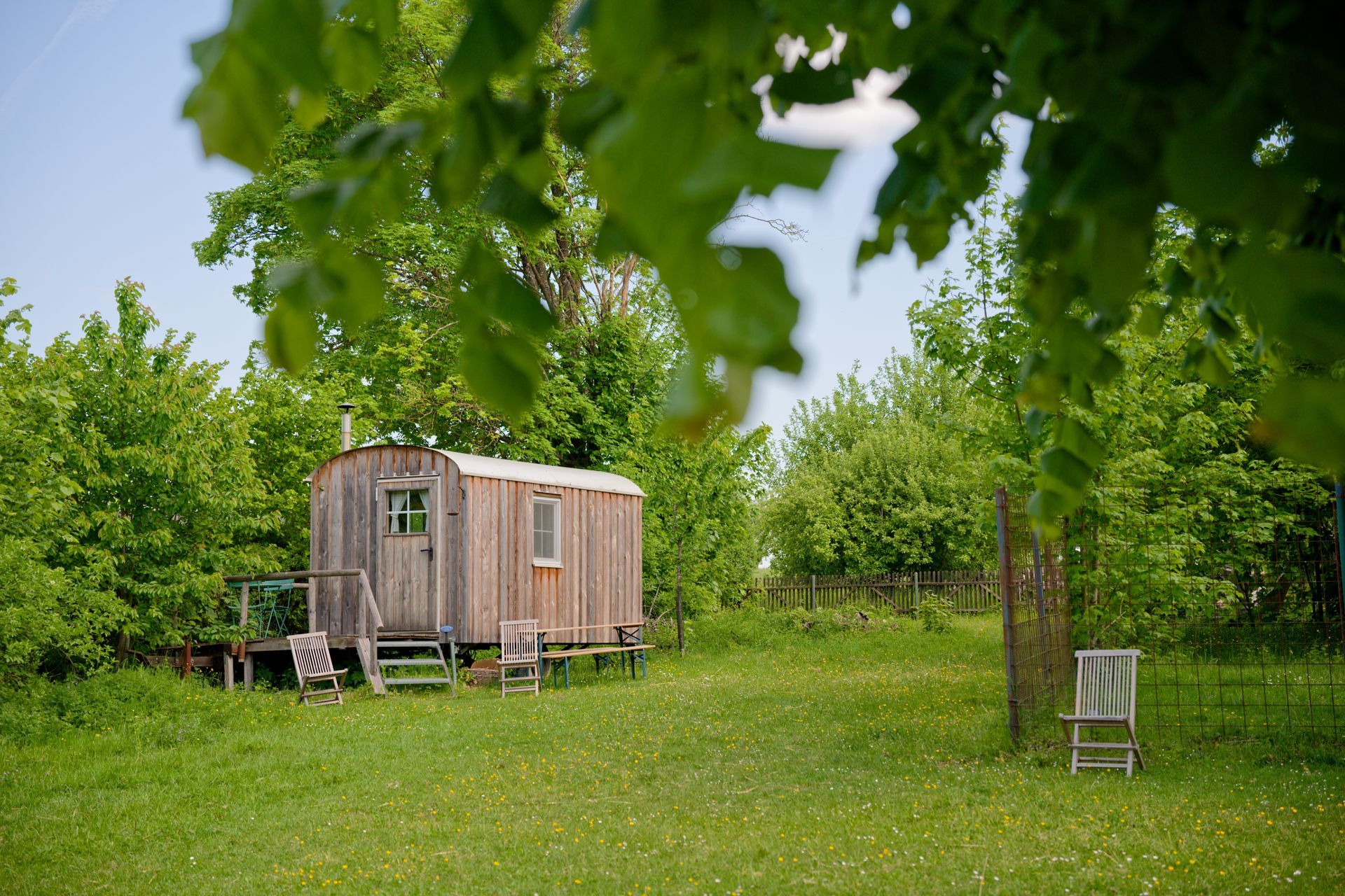 eine Übernachtung im gut isolierten Schäferwagen (im Winter mit Holz vorgeheizt)