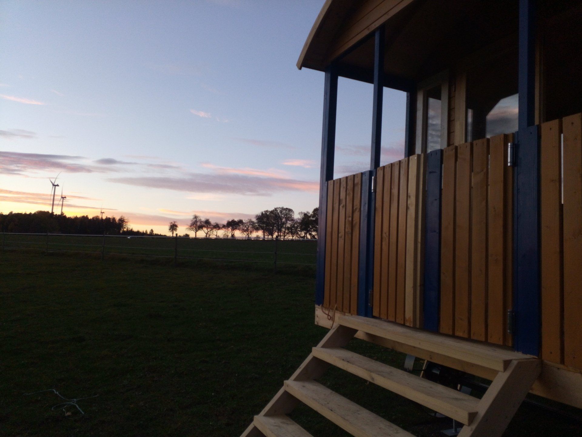 In the shepherd's wagon you have a view of the pasture and the sunset