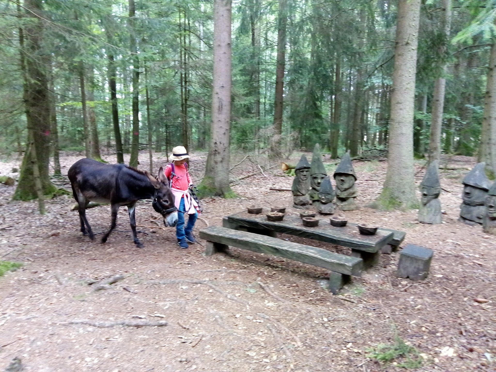2 h Gehzeit, 6km, Dauer ca. 2,5 – 3 h inklusive Striegeln der Esel, Kobolde und andere Waldbewohner