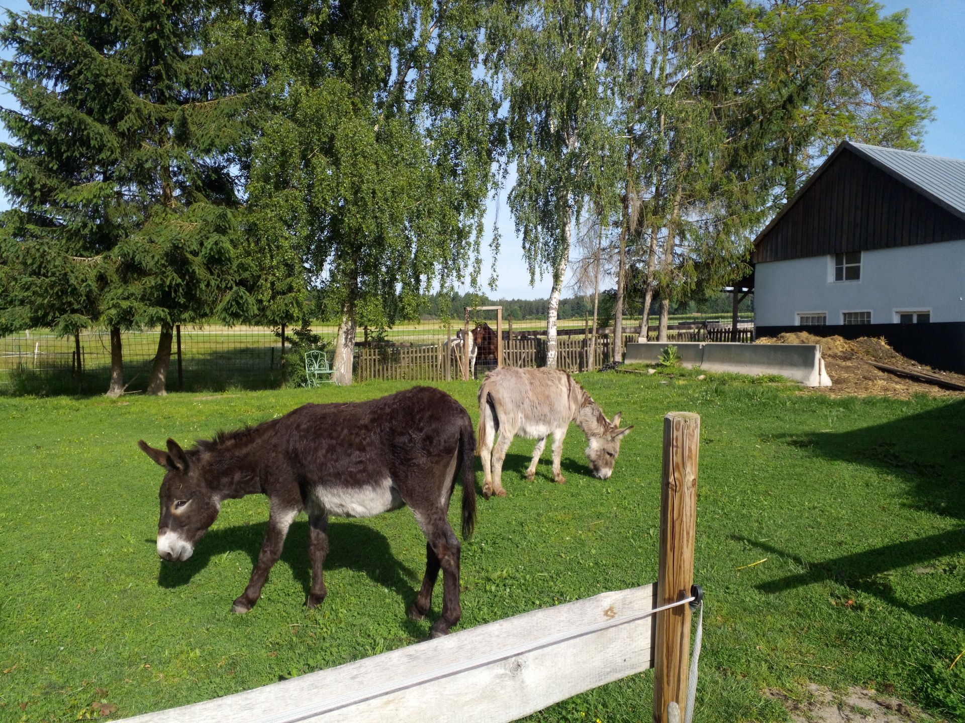 Esel sind auf der Weide des Gasthofes Zum Goldenen Hirsch während Sie gemütlich essen